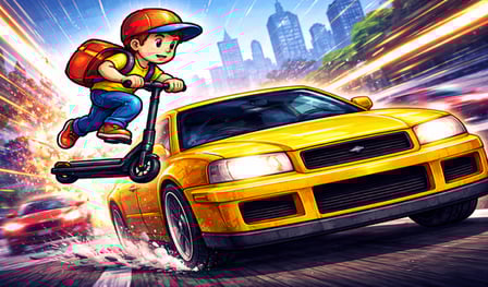 The mission is brutal. Navigate city streets on a scooter. Jump over moving cars. One collision ends the run. Your goal: Survive as long as possible. Rack up distance. Push your reflexes to the limit.